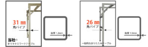 折りタタミ 角パイプ太さ